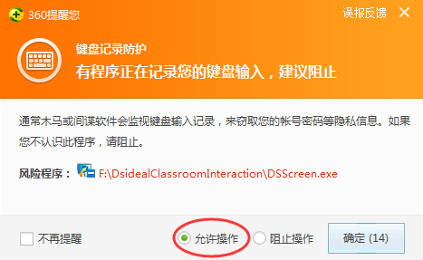 如果电脑安装了360安全卫士,启动“理想学堂互动助手”,会弹出阻止对话框,选择“允许操作”,点击“确定”即可。