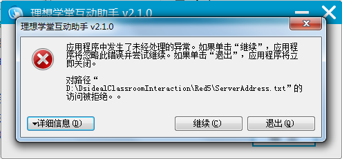 安装之后,运行理想学堂互动助手,然后点击确定就会一个警告窗口,如下图,怎么办?