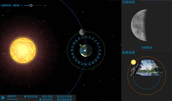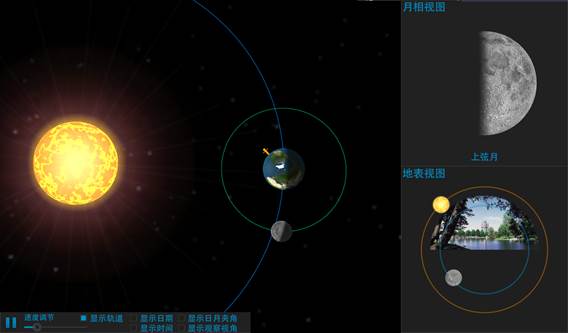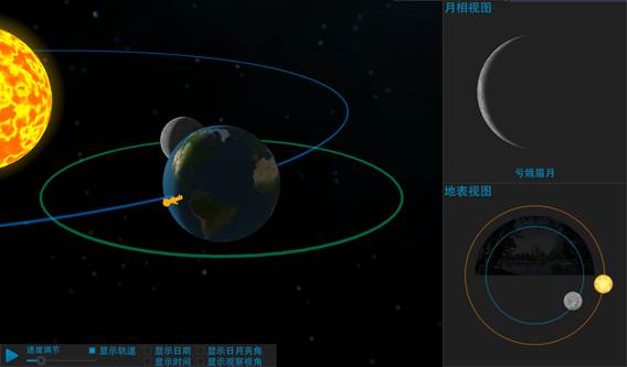 2. 速度调节:根据教学需要通过滑动条控制月球运转的速度;