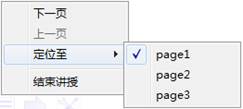 在软件界面左侧的缩略图预览区中单击鼠标右键,在右键菜单中选择“开始讲授”,文件进入全屏播放状态,用户可以通过右键菜单或键盘快捷键(Esc-结束播放,Enter-下一页)控制播放,此功能亦可通过点击键盘F5键实现;若要从当前页开始播放,在右键菜单中选择“从当前页面开始讲授”,或是点击界面右下方的“讲授”按钮