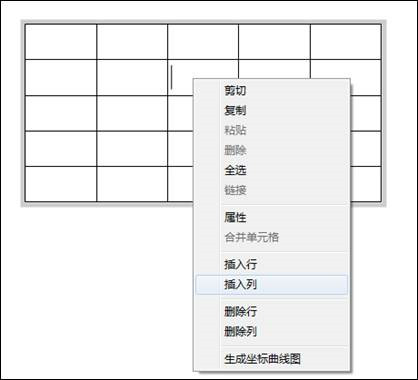 2)单击右键,在“右键菜单”中单击“插入列”,会给此表格追加一列。