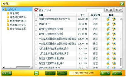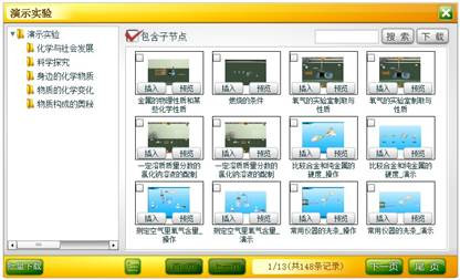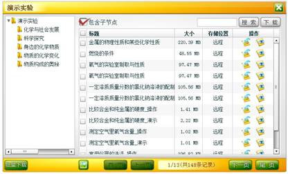 单击“同步实验”标签中的“演示实验”按钮,弹出素材库面板左侧是知识体系结构,右侧是素材列表。