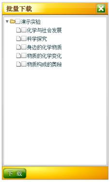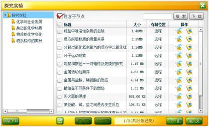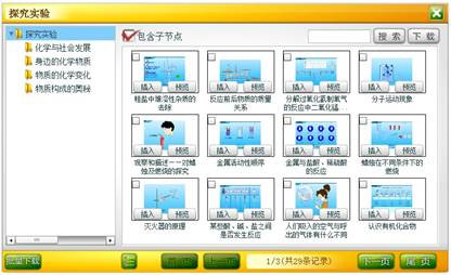 单击“同步实验”标签中的“探究实验”按钮,弹出素材库面板左侧是知识体系结构,右侧是素材列表。