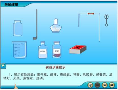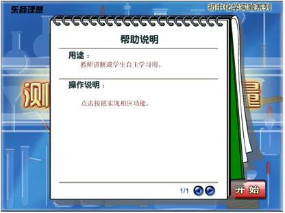 初中化学虚拟实验室软件为每一个演示和分组实验提供了该实验的实验帮助,点击内容显示区中的东师理想,即可获得该实验的帮助说明。如下图所示