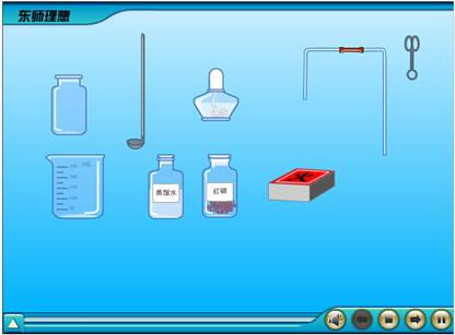 虚拟操作功能允许用户操控实验仪器与药品。点击虚拟操作按钮,出现下图所示的界面。