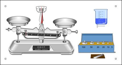 将烧杯放到天平的一侧后,鼠标置于烧杯上,向上滑动鼠标,可实现改变测量用品。