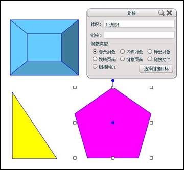 单击选中要进行链接设置的对象后,点击工具栏中的“链接”按钮或在右键菜单中单击“链接”按钮,即出现此操作对象对应链接的设置对话框,用户可以通过设置对话框中的内容来改变对象的链接内容。