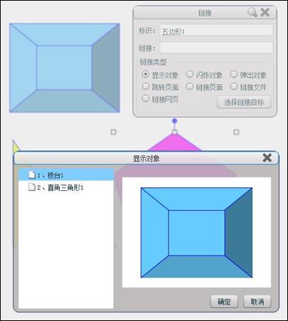 显示对象:设定后,播放状态下点击设置对象,出现链接的内容,再次点击,链接内容消失,该操作可反复。