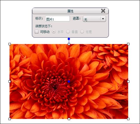 在属性对话框中,常见的有标识、遮罩和讲授状态下可移动三项功能设置。标识可以设置对象的识别关键词。遮罩可以对对象进行部分展示和强调,选项包括无遮罩、圆形遮罩、矩形遮罩、圆角矩形遮罩和任意四边形遮罩,而且用户可以通过调整遮罩边缘的红色热键调整遮罩的大小和位置。可移动功能如果勾选后,可以选择水平,垂直,任意三种方式,任选一种则在讲授状态下按照此方式移动。