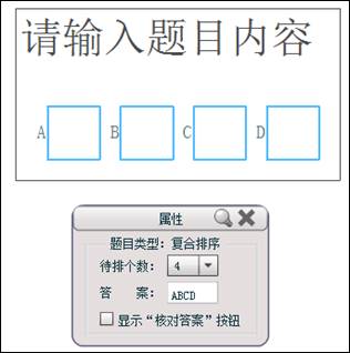 单击工具栏“复合排序”按钮,出现出题工具和属性框。此复合排序题支持横向排序与纵向排序。