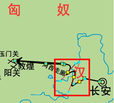 鼠标放置路线上的方框拖拽可以改变路线的弯曲度,被调整的方框颜色改变,并延伸出两端有圆点的线,通过该线可以调节以原黄色方框为中心的一段线条的弯度及其方向: