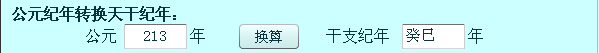 在公元后输入框中输入数字,点击换算后,系统自动在后面干支纪年输入框中显示相对应的干支纪年: