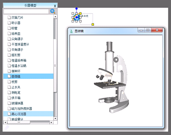 单击“辅助工具”标签中的仪器介绍按钮,弹出实验仪器的三维动画菜单,点击列表中的仪器名称,可以将该仪器的三维动画方便地插入到文件中。