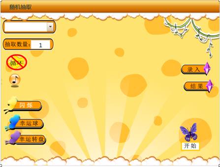 随机抽取工具是帮助教师在授课过程中点名或者分组的工具,其中有三套模板,即“闪烁”、“幸运球”、“幸运转盘”。如下图:
