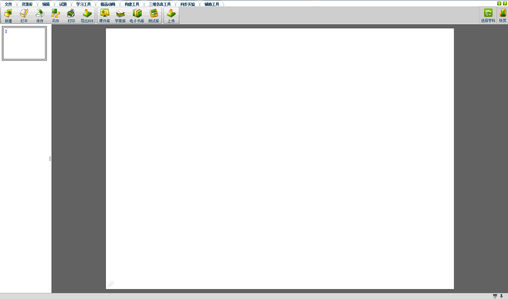界面上方的菜单栏中包括资源、编辑工具、学科特色工具和辅助工具等模块。