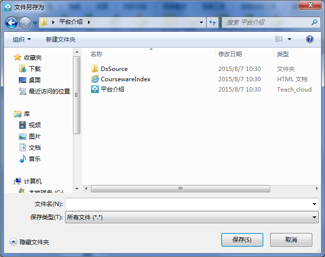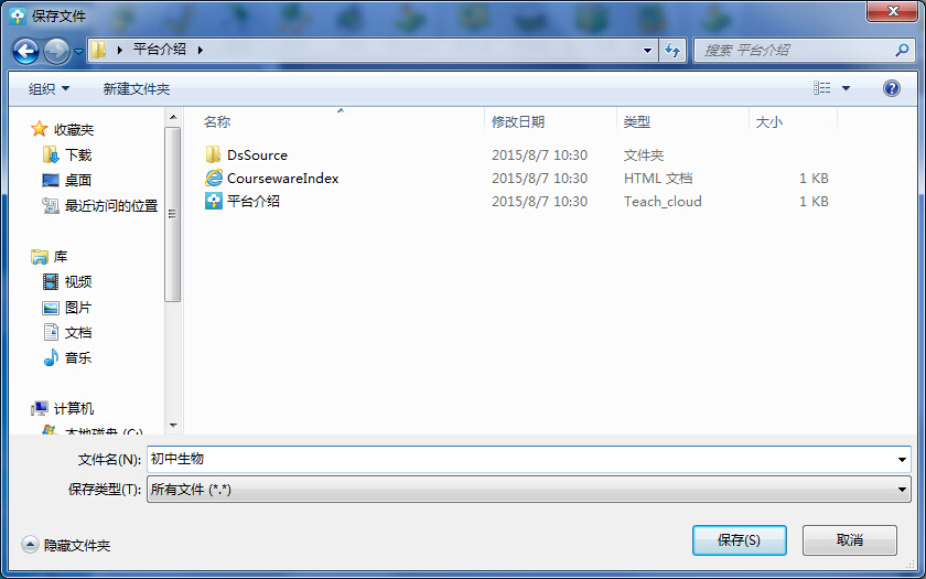 (注:保存成功后,平台在指定路径下生成以文件名命名的目录文件夹,在文件内包含授课文件以及相关资料。)