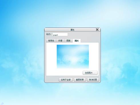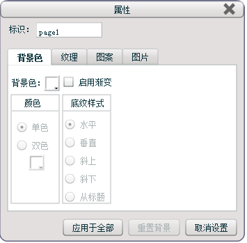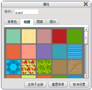 (2)单击“应用于全部”按钮,,则如果背景都为统一背景,此时每一页内的“重置背景”均不可用;当改变其中一个页面背景发生变化时,此页面的“重置背景”可用;