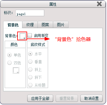 (1)单击“背景色”的拾色器位置,选择要使用的颜色;