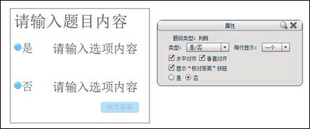 单击工具栏“判断”按钮,显示出题面板和属性框。
