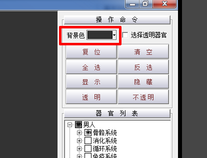 为了看清楚器官之间的位置关系,需要将外面的器官透明显示,从而可以看到里面的器官,操作方式和显示隐藏一样,需要先选择要操作的器官;不透明是相反的操作。