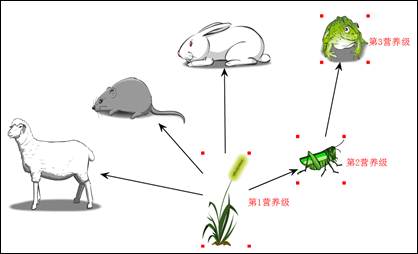 按钮,可以将页面中的捕食关系删除掉。当要对某一条食物链标定营养级时,可以通过按住shift键的同时点选一条食物链上的各个生物(此时用于链接的箭头在闪动),然后点击