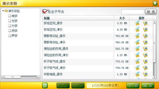 ,弹出演示实验面板, 左侧是知识体系结构,右侧是素材列表。