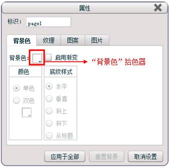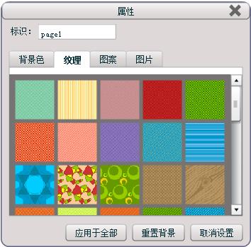 (2)单击“应用于全部”按钮,则如果背景都为统一背景,此时每一页内的“重置背景”均不可用;当改变其中一个页面背景发生变化时,此页面的“重置背景”可用;