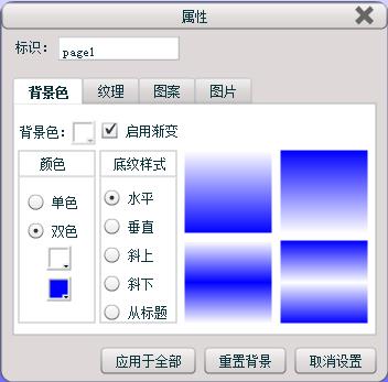 在“背景色”选项卡中,选中“启用渐变”选项后可以给页面添加渐变效果。