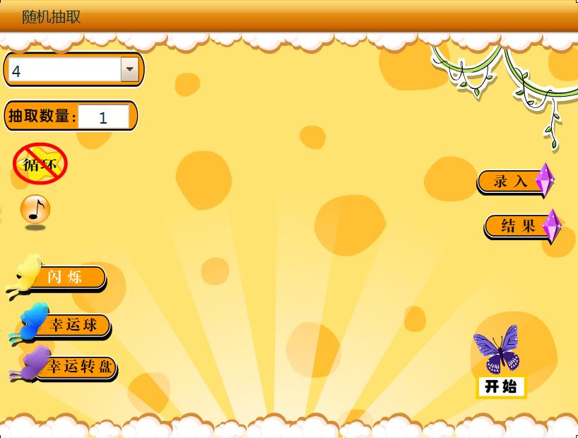 数据录入完成后,在对话框中选择抽取数量,最多可以设置9个。点击“开始”按钮后,程序进入选择状态,再点击“确定”按钮后即可显示结果。