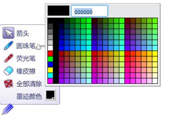 单击“墨迹颜色”右侧方框下的小三角按钮,可以对圆珠笔或荧光笔的墨迹颜色进行设置,如下图所示。
