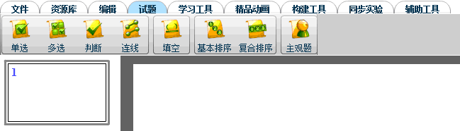 自主编辑测试界面中菜单栏的资源和功能模块与学案一样,可以通过试题工具自主编辑试题。