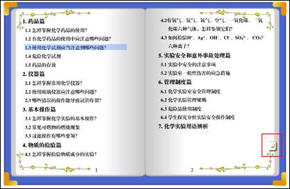 ,可以查看里面内容。该软件类似电子书,可逐页翻阅,也可根据某一专题,双击,跳转到相应页。点击书上右下角