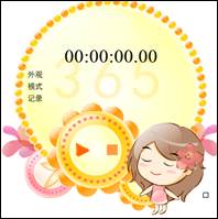 以“蓝色精灵”模板为例,功能按钮可以控制计时器的开始、清零、记录结果