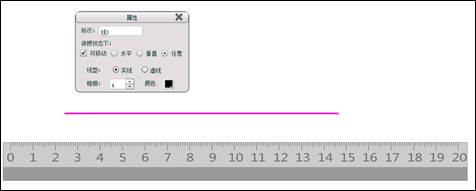大小进行整体缩放,旋转等,沿着直尺的上边缘可以直接按住鼠标左键进行画线,画好线后单击鼠标右键选择“属性”,在弹出的属性框中对画好的线的线型、粗细、颜色等相关属性进行设置。
