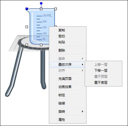 选中要编辑的图形后,右键单击图形,调出右键菜单后,鼠标移动到“叠放次序”文字上,即出现分菜单,可以选择将选中图片“上移一层”、“下移一层”、“置于顶层”或“置于底层”。