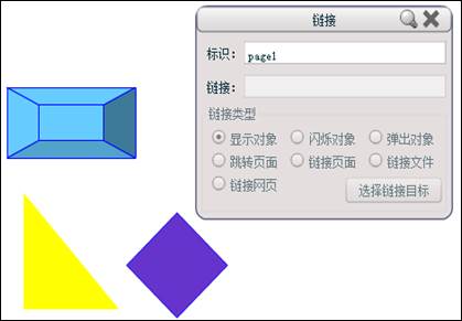 单击选中要进行链接设置的对象后,点击工具栏中的“链接”按钮或在右键菜单中单击“链接”按钮,即出现此操作对象对应链接的设置对话框,用户可以通过设置对话框中的内容来改变对象的链接内容。