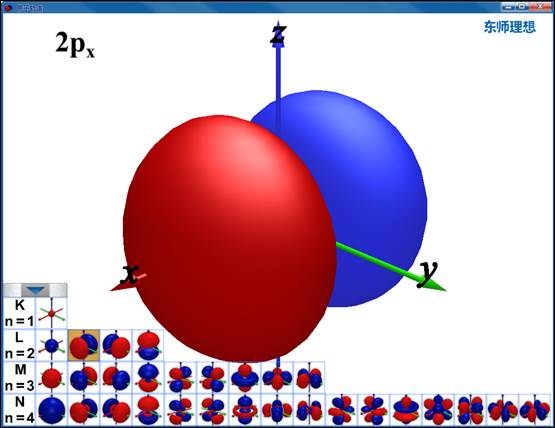 点击工具栏按钮“原子轨道”,选择想要查看的轨道,通过鼠标左键控制模型的旋转,可以从任意角度观看。