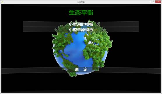 在工具的首页面选择生态环境模板,进入编辑页面。点击“创建”按钮,可以选择生态环境模板;点击“打开”按钮,可以读取之前的存档,点击“退出”按钮,退出并关闭程序。