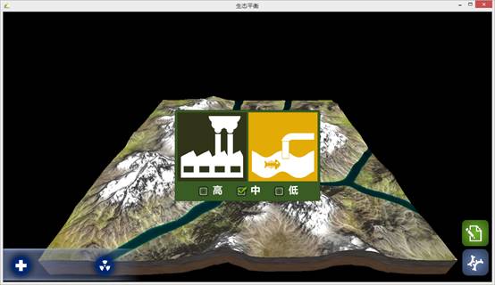 选择模板后,进入编辑界面。选择初始化生产者状态后,点击 编辑模式按钮即可构建群落;点击界面左下角 按钮,再在画面中点击要添加的位置,即可添加生物;点击 按钮可以在环境中添加污染物。