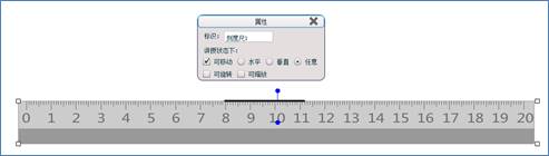 单击“刻度尺”按钮,页面上出现刻度尺,拖拽四个角落的白色矩形框可以对刻度尺的大小进行整体缩放、旋转等。沿着直尺的上边缘可以直接按住鼠标左键进行画线,画好线后单击鼠标右键选择“属性”,在弹出的属性框中对画好的线的线型、粗细、颜色等相关属性进行设置。