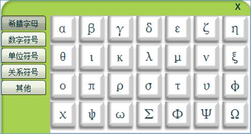 符号:快速插入希腊字母、数字符号等内容。