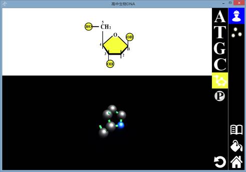 在【脱氧核苷酸】模块中,点击右侧结构图标(如脱氧核糖)即可在画面中添加相应结构,画面上方为结构式,下方为相应的三维球棍模型。