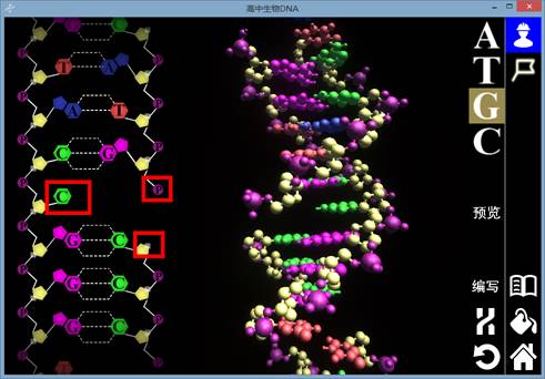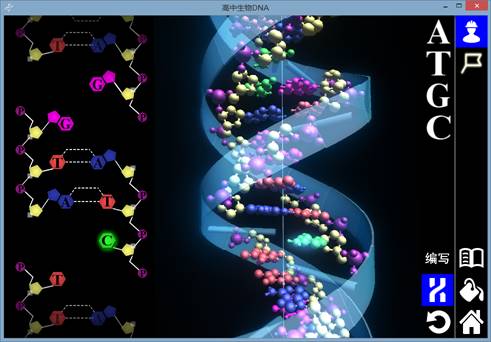按钮可以重新编写DNA双螺旋。其他按钮与【脱氧核苷酸】模块相同。