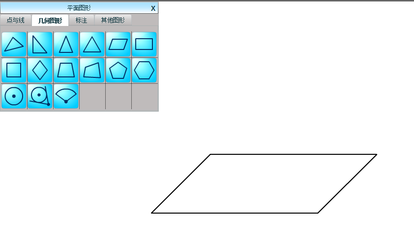 单击“平面图形”按钮 ,出现如下图所示的面板,单击相应类别下的图形按钮,页面出现相应的图形。