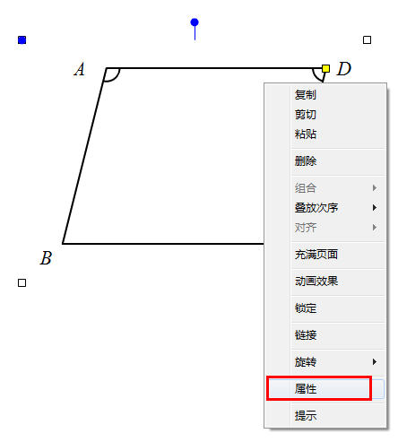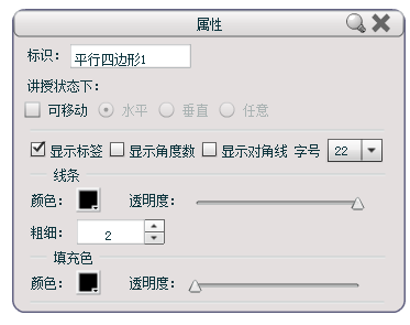 3)其他属性:单击每个图形,然后单击鼠标右键在出现的属性面板中选择“属性”,在弹出的面板中可以进行选择和操作,可以显示内角度数、对角线等;同时可以对图形的线条粗细、颜色及填充色进行调整。