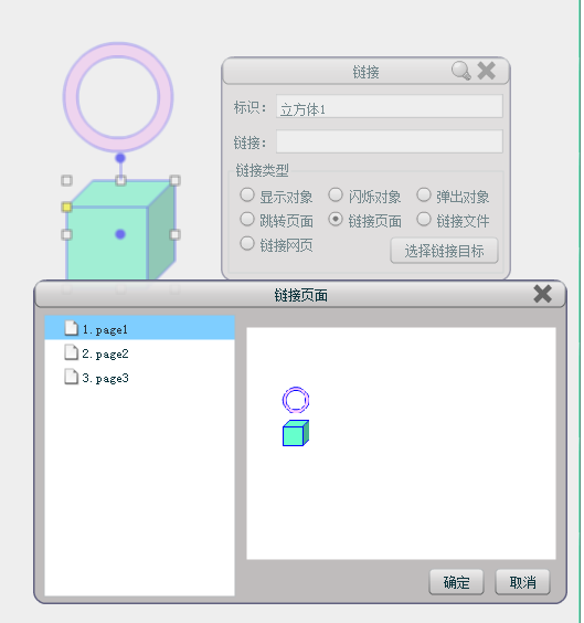 链接页面:设定后,播放状态下点击设置对象,跳转到设定好的页面中,并自动在页面右下角带有返回箭头,点击即可回到跳转前的页面。
