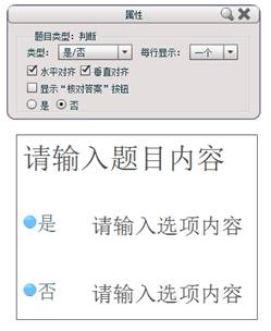 单击工具栏“判断”按钮,显示出题面板和属性框。