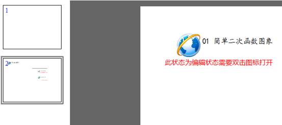 exe插入:exe是由几何画板的gsp格式导出的,插入后会出现在编辑状态下是双击鼠标打开,若是播放状态下是单击鼠标打开,且几何画板的exe一次只能打开一个,要打开第二个需要先关掉第一个。