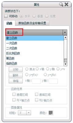 点击“建立新函数”选择您要创建的函数(一次函数、二次函数、反比例函数、幂函数、指数函数、对数函数)