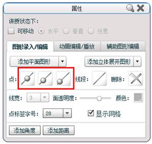 添加中点:在图形上选中一条线段,点会在选中的线段上添加一点(默认为此线段的中点),用鼠标可以在线段上任意拖动;